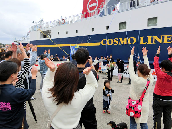 港には大勢の人が見送りに来ています。