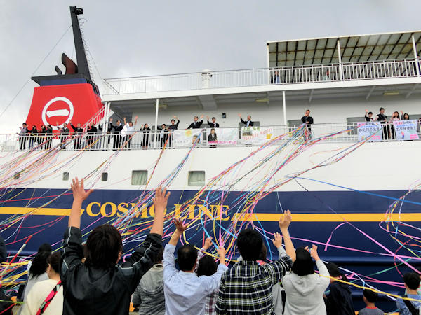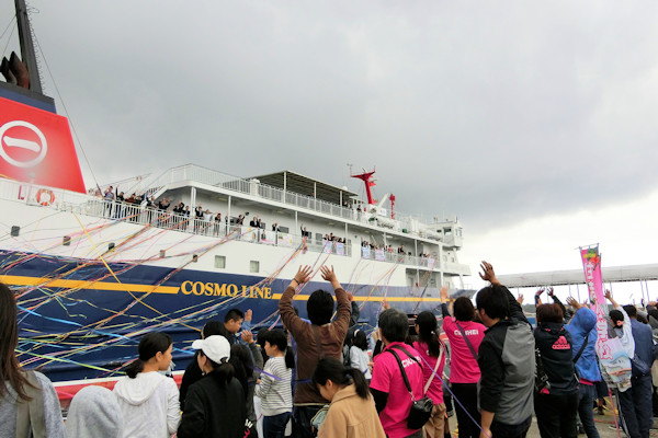 紙テープと格闘している間にカーフェリー「わかさ」は出向していきました。