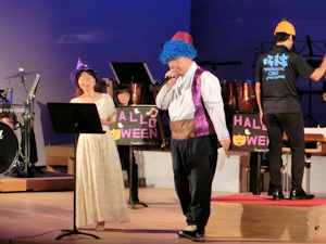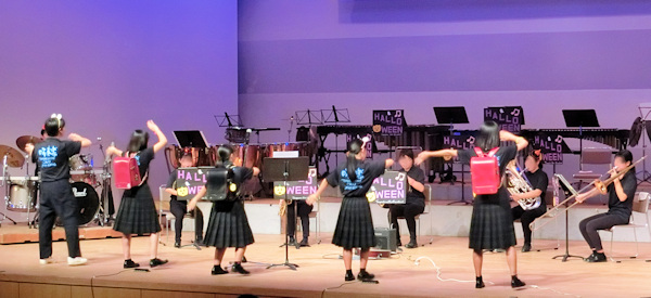 今年も第3部で部員が踊り、特別参加の先生が歌って踊る楽しい演奏会。
