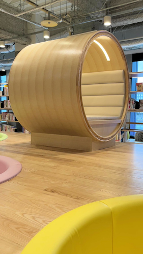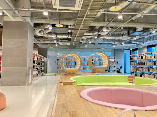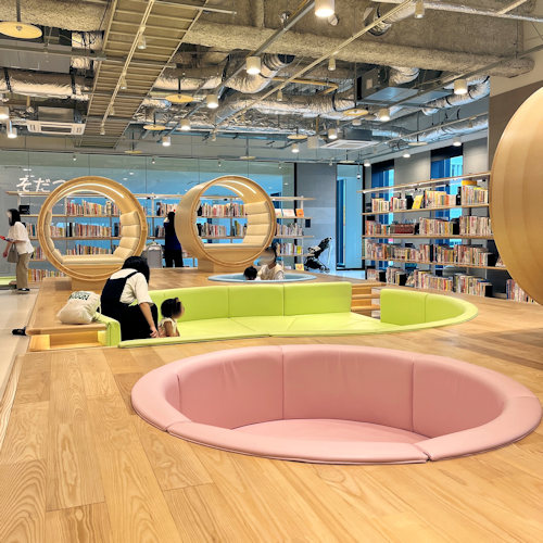 子供連れでも気兼ねなく楽しめる図書館。