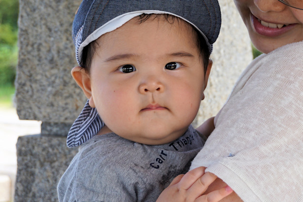 ママに抱かれてやっとニッコリ ご機嫌がなおりました。