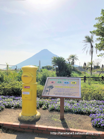 遠くに見える薩摩富士「開聞岳」 幸せを届ける黄色いポスト