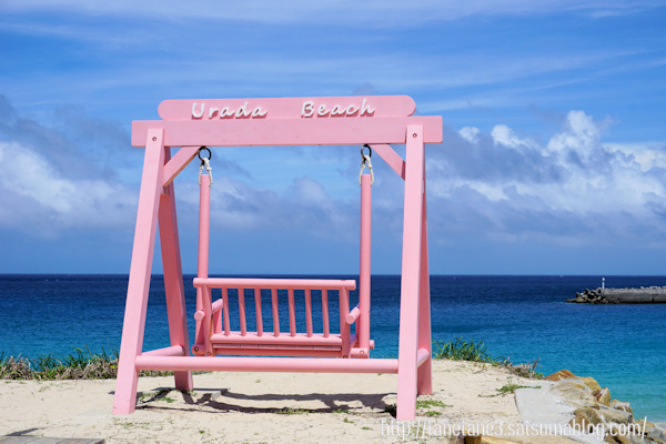 urada beach の二人乗りベンチ型ブランコ可愛いですね。