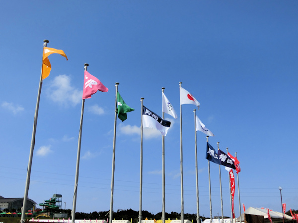 きれいな空、カラフルな旗ですね。^±^ノ