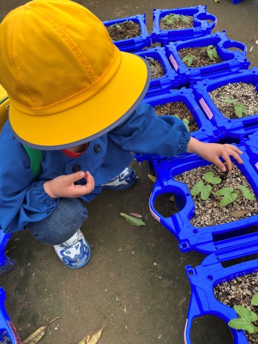 幼稚園で朝顔を育てたようです。