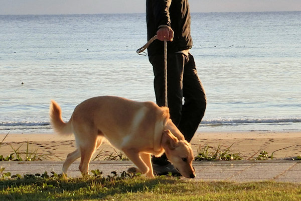 今回の「ワンゴの日」は、初日の中お散歩中のワンちゃんです。