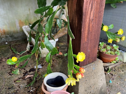 ウッドデッキ下に置いてあるサボテン