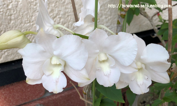 玄関先に置いている鉢植えの蘭が今年も咲きました。