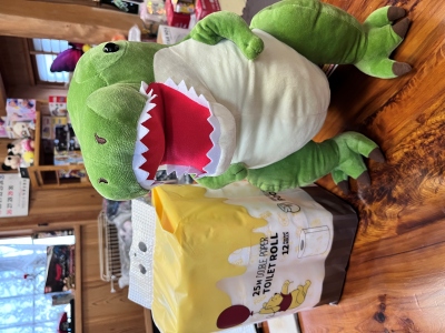 今日は恐竜のぬいぐるみとトイレットペーパー